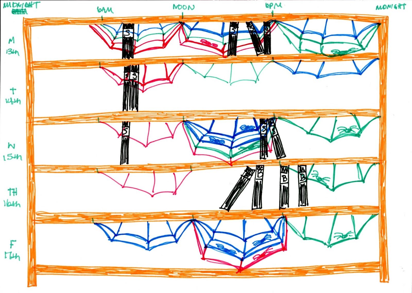 Length of time was another consideration by students. They employed popsicle sticks or pipe cleaners as observed in Figure 6. In the first image, the students used the height of pipe cleaners to denote the amount of time they were on the phone during different locations – class (pink), outside (purple), and dorm room (white). The second image displays the amount of sleep a student slept over the course of four days. The first stick shows the student slept for four hours between 12:30 am and 4:30 am.