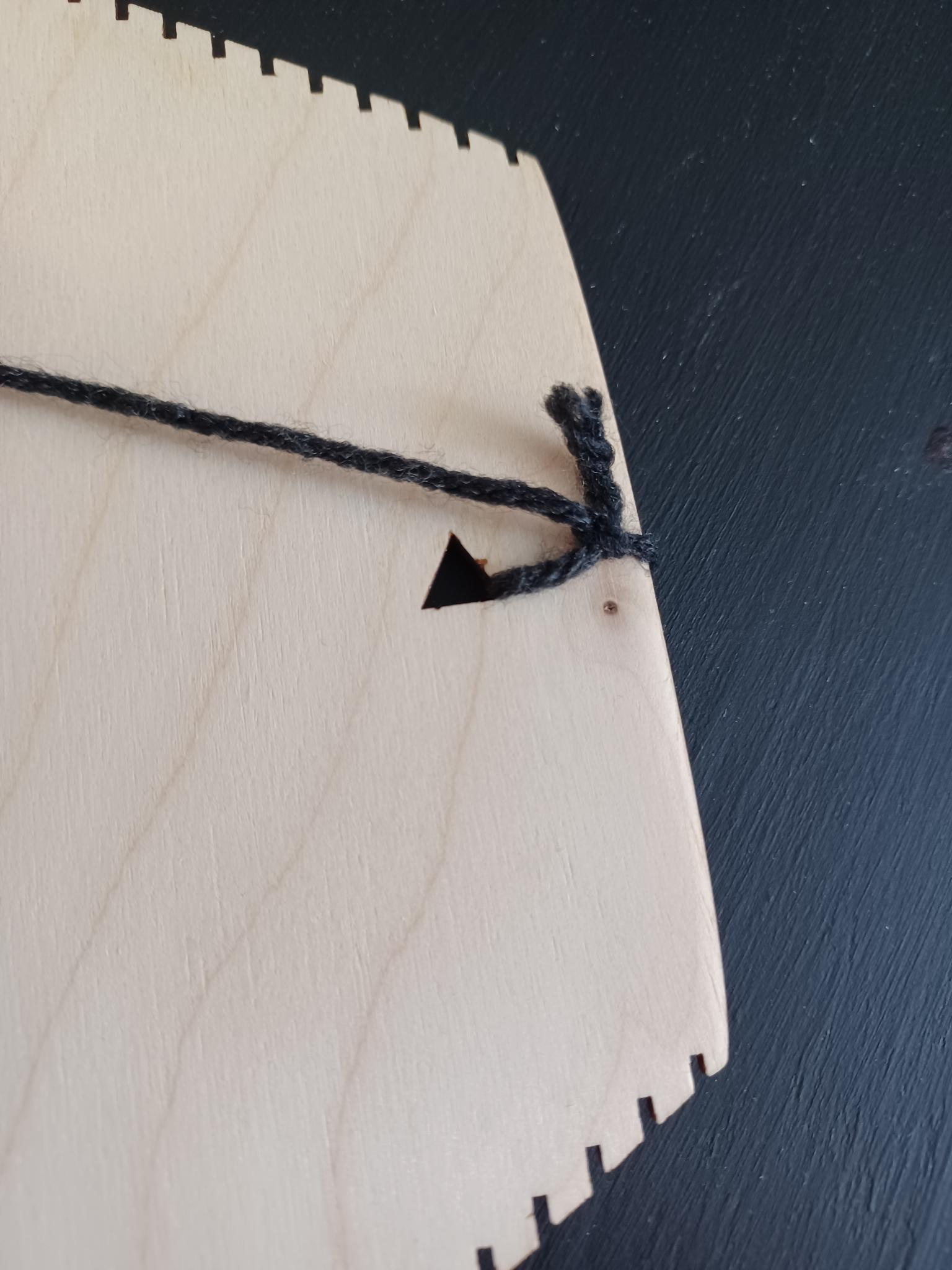 - When you finish the warp layer, tie the end of your yarn in the same way you did at the beginning. Make sure it is snug, as having the end loose can create problems as you weave. (I had to retie mine partway through making this sample, as it was too loose and it started to fall off the last two notches as I was weaving.)