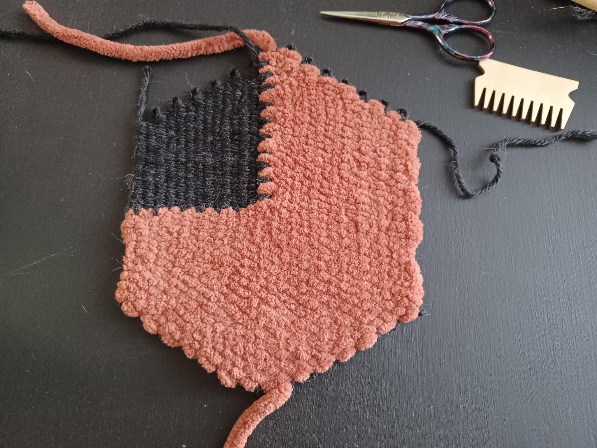 - When you finish the rest of the 4-weight section, cut off your remaining yarn and leave a tail long enough to sew in. You can now remove the project from the loom. Carefully remove the warp from the notches around the bottom of the loom, and then the project should easily pop off of the top. Untie or snip the warp that is tied to the loom. You can then sew in all of your ends.